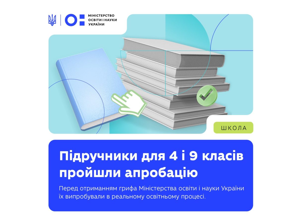Нещодавно підручники для 4 і 9 класів Нової української школи отримали гриф «Рекомендовано Міністерством освіти і науки України». Перед отриманням грифа вони пройшли апробацію — використання навчальної літератури в реальному освітньому процесі.