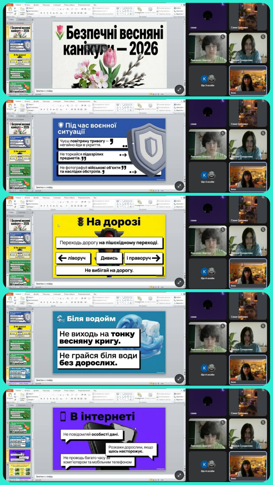 Під час заходу учні пригадали правила користування електроприладами, а також правила поведінки біля водойм, що є особливо актуальними у весняний період.