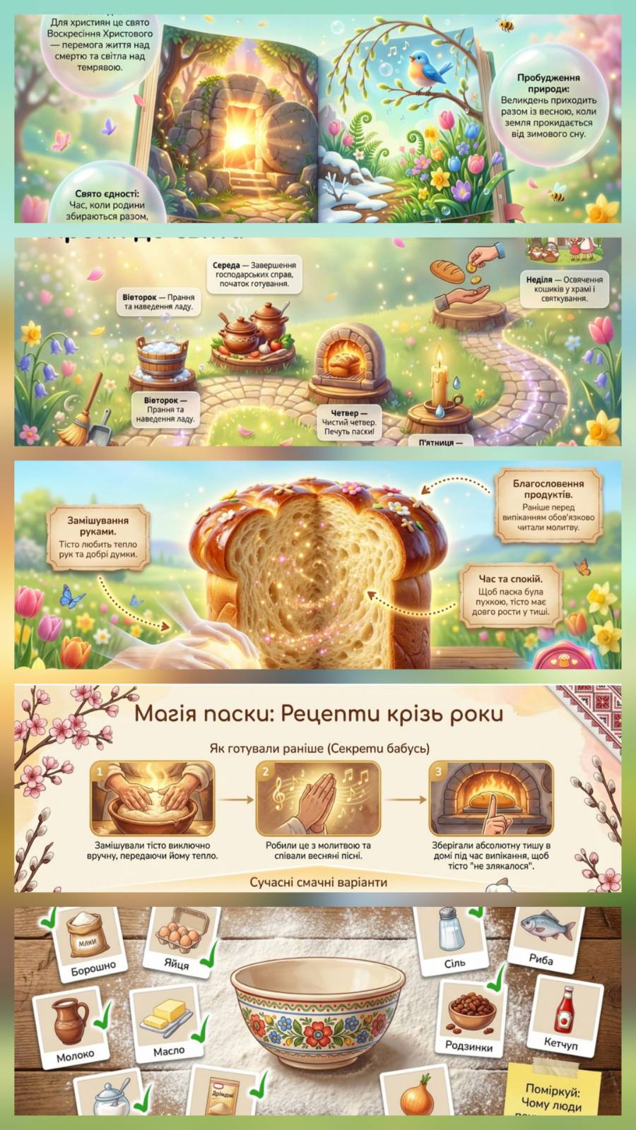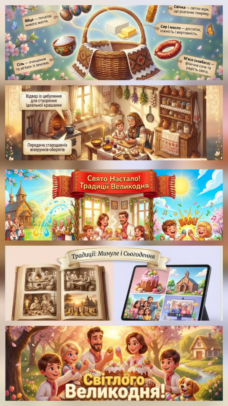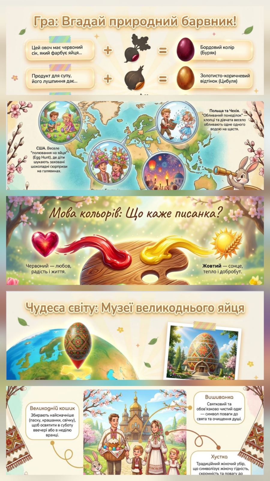 Під час заняття діти поринули у світ давніх звичаїв та обрядів, дізналися про значення Великодня, символіку писанок і крашанок, а також ознайомилися з традиційними великодніми стравами. Учні активно долучалися до обговорень, відповідали на запитання та із задоволенням ділилися сімейними традиціями святкування.