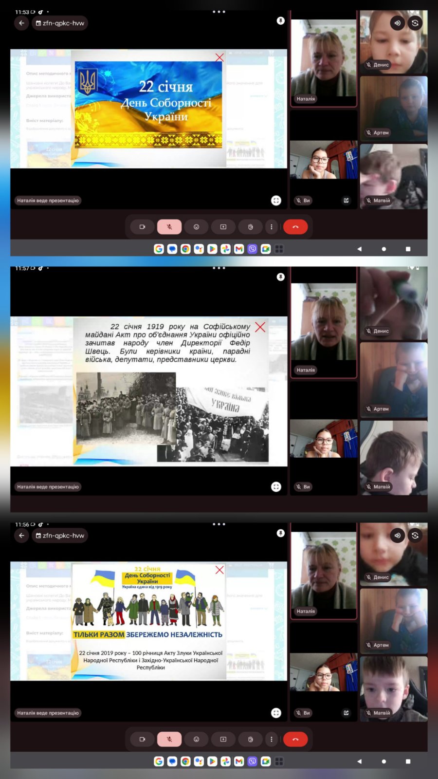 Для ліцеїстів 2-3 класів була проведена віртуальна подорож “Україна-єдина держава! Для 1-4 класів – пізнавальна бесіда “Єдність народу-сила держави”. Учні середньої школи переглянули пізнавальні відеоматеріали та обговорили історичні події, пов’язані з проголошенням Акта Злуки 22 січня 1919 року.
