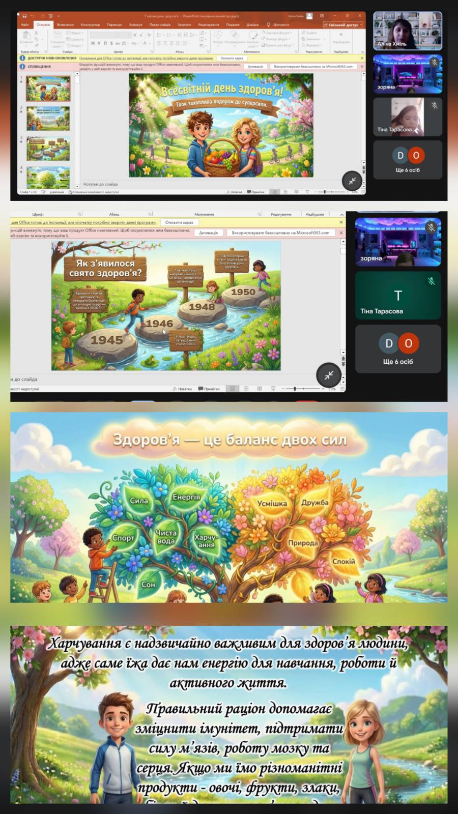 Для ліцеїстів 2–3 класів було проведено інтегроване заняття «Твоя захоплива подорож до суперсили». Під час заходу учні ознайомилися з історією виникнення Всесвітнього дня здоров’я, обговорили основні складові здоров’я та з’ясували, з чого має складатися ідеальний обід. Особливу увагу було приділено поняттю «веселка на тарілці», яке допомогло дітям зрозуміти важливість різноманітного та збалансованого харчування.