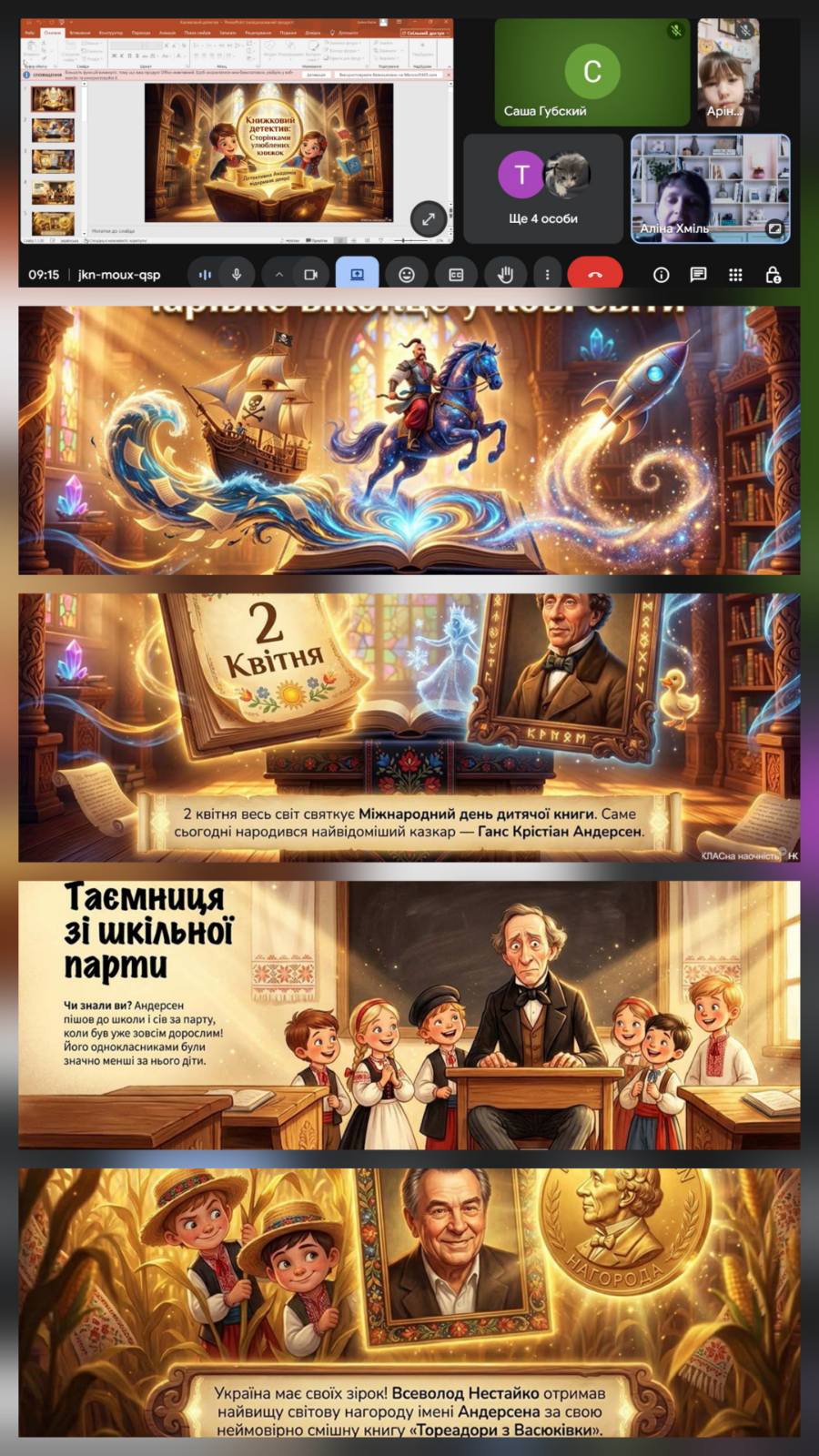 З нагоди Міжнародного дня дитячої книги для учнів 2–3 класів проведено інтегроване заняття у форматі книжкового детективу «Сторінками улюблених книжок».